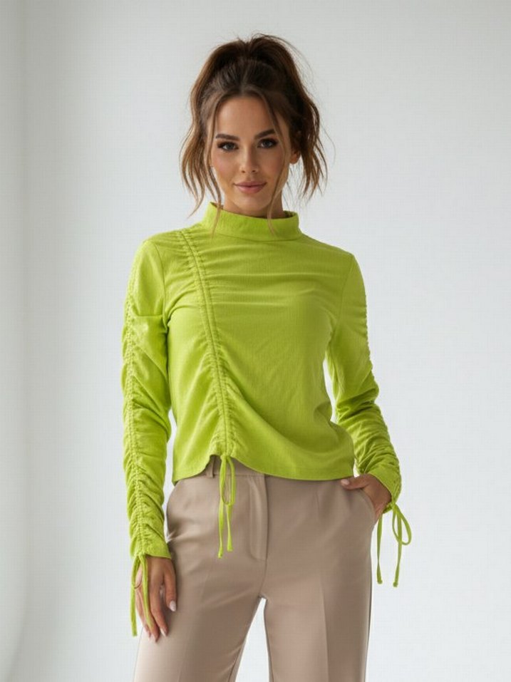 Neon yeşili kolları ve ön tarafı ayarlanabilir büzgülü vücuda oturan bluz. en 40cm boy 50cm