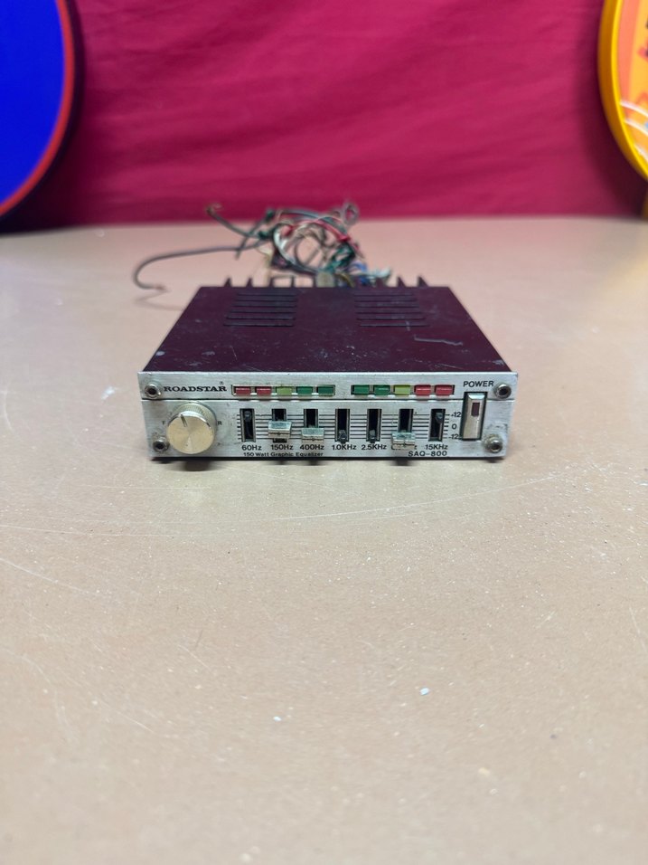 ROADSTAR müzik sistemi, çoklu frekans bantları ve güç düğmesi bulunan renkli bir ekolayzer ekranına sahiptir. Kırmızı arka plan ve gümüş ön panel ile kontrol düğmeleri bulunur. Ürünümüz gayet iyi durumda sorunsuz çalışıyor tek tuşu yoktur