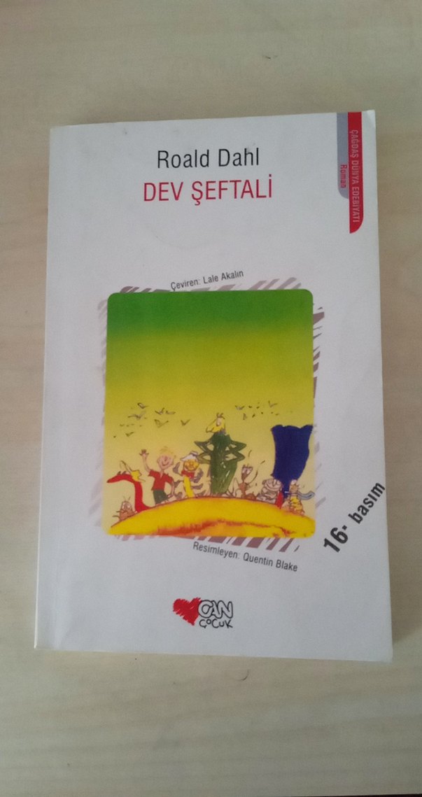 Roald Dahl'ın "Dev Şeftali" adlı çocuk şiir kitabı Quentin Blake'in çizimleriyle. Lale Akalın çevirisi, Can Çocuk 16. basım.