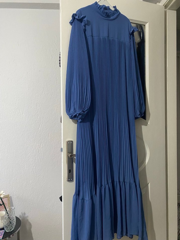 Robadan pliseli balon kol şifon elbise