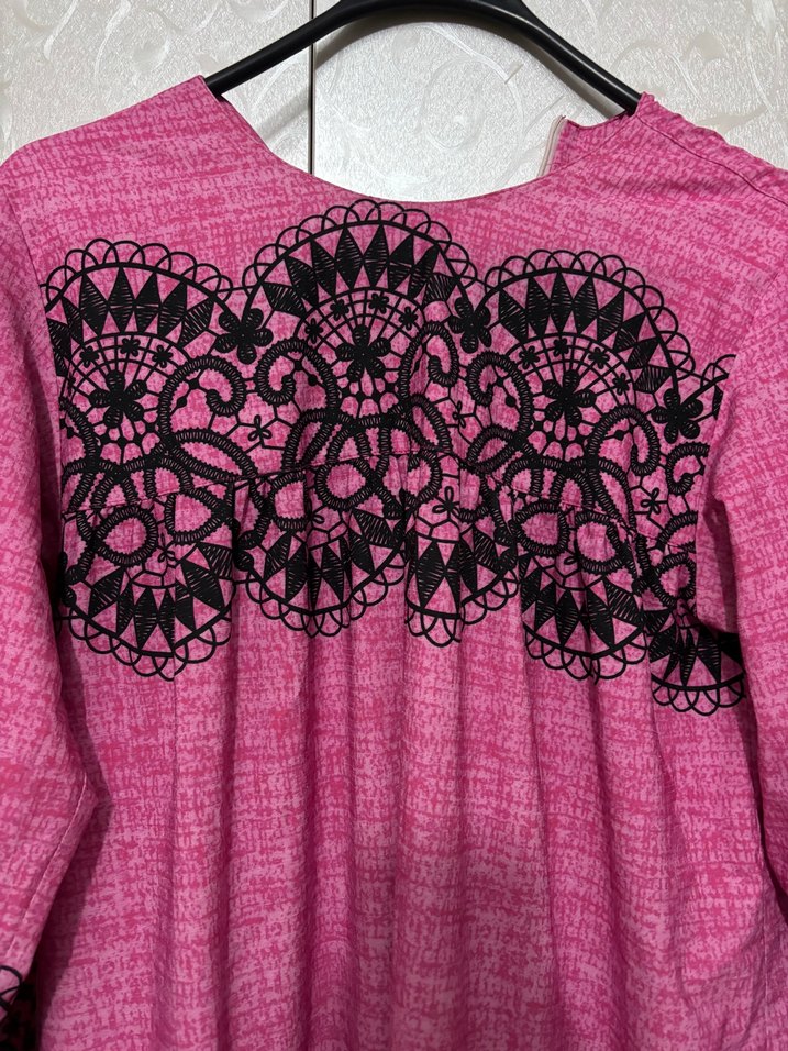 Pembe renkte, uzun kollu ve. Ön kısmında siyah dantel işlemeler bulunur. Yuvarlak yakalı ve uzun boylu, renkli bohem tarzı yansıtır ürün tek fiyat içindir .