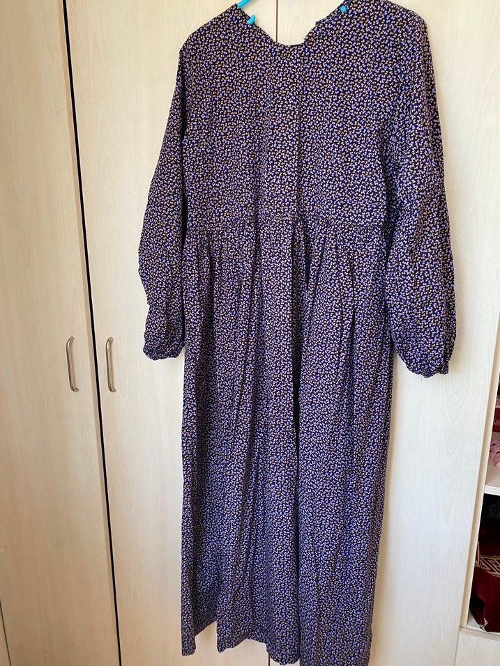 Göğüs altından robalı elbsie boyu 132 cm kol altından göğüs ölçüsü 54 cm. Annem diktiği için bedenini bilmiyorum ama 44 bedenken giyiyordum. Arkasında düğme yerine annem ufak lastik dikmişti onu düğmeye takıyordum ama kopmuş sanırım, defo değil ama yine defolu işaretledim ondan sebep