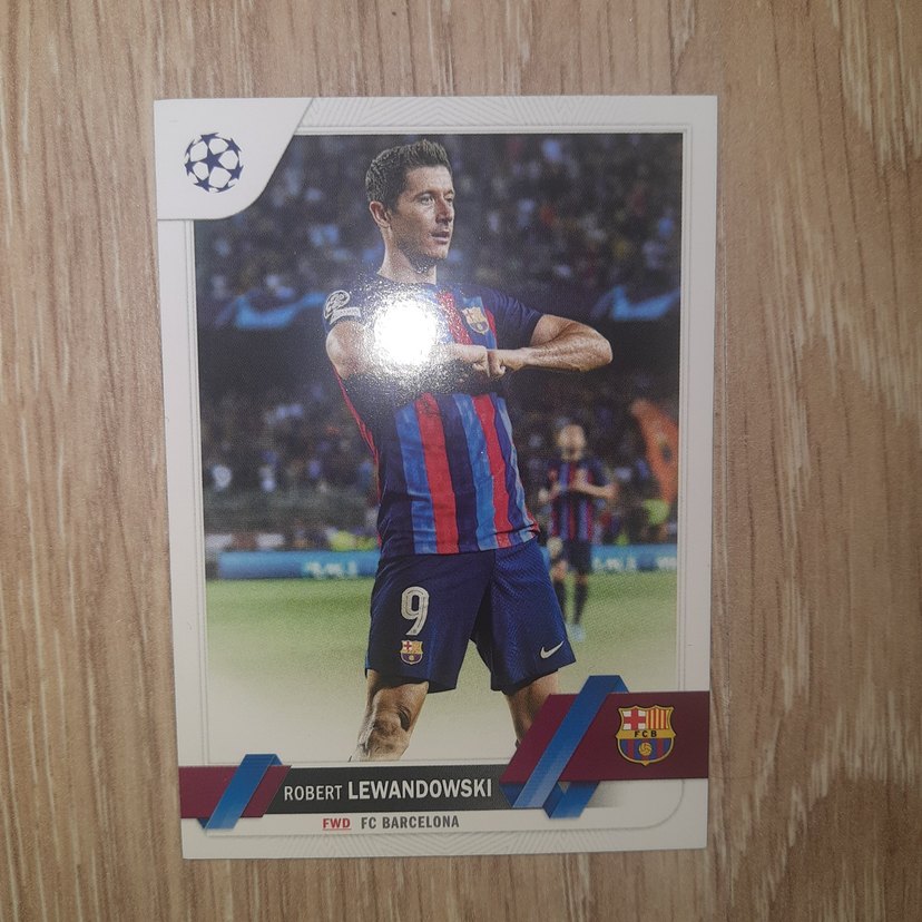 Robert Lewandowski'nin FC Barcelona formasıyla yer aldığı futbol kartı. Forvet pozisyonu vurgulanmıştır. ⚽