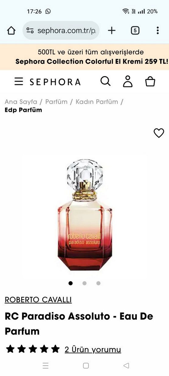 Roberto Cavalli Paradiso Assoluto Edp, kristal görünümlü kapaklı, keskin hatlara sahip şık şişede sunulur. Kadınlar için zengin ve sofistike bir koku sunar. italyadab almistim 100de 95 i dolu orjinlaligini sorgulatabilirsinjz kutusunu attim