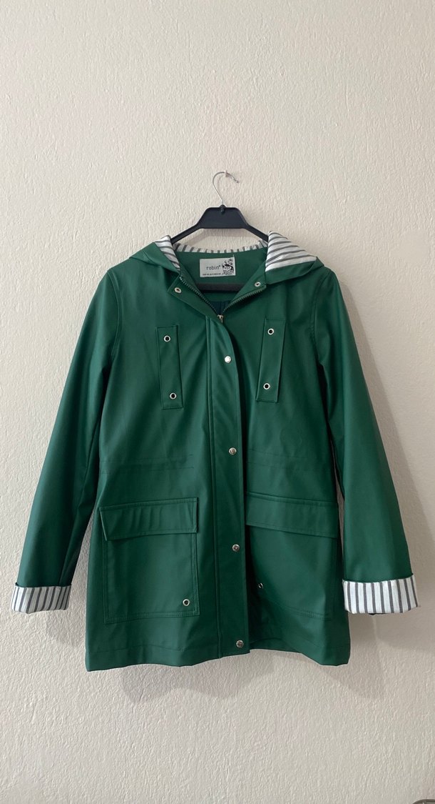 Robin 36 beden Düğmeli Midi Yeşil Kadın Yağmurluk