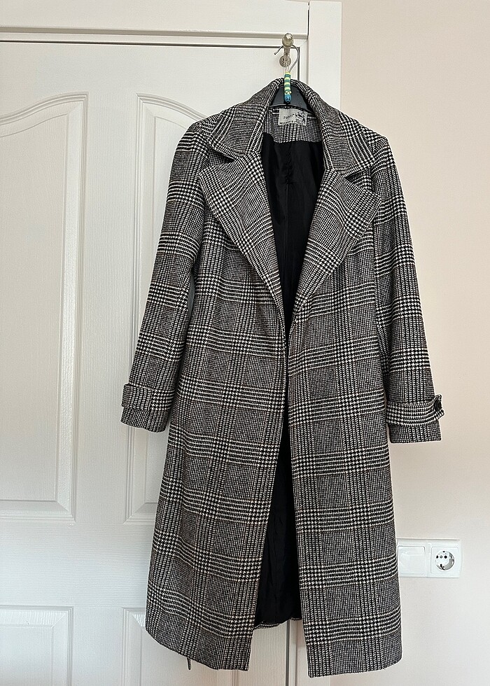 Çok az kullanıldı 36-38 bedene uyumlu, kareli, tok kumaşı olan kalın bir kaban