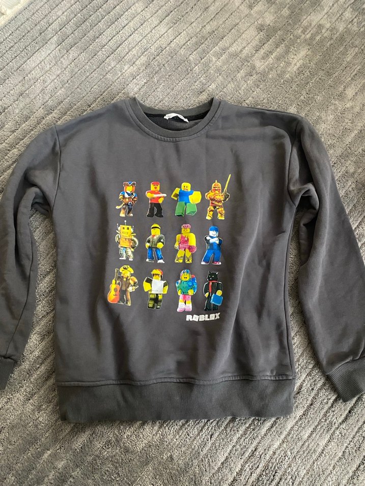 Gri, uzun kollu sweatshirt, bol kesim ve yuvarlak yaka özelliklerine sahiptir. Yumuşak ve sıcak dokulu kumaştan örülüdür, önünde renkli Roblox karakter baskıları vardır.kız erkek giyebilir ben yetişkinim kendim giyiyordum rahat spor zara dan aldım 1.2 defa giydim