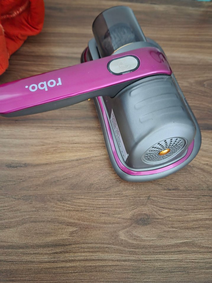 Pembe renkli Robo kablosuz elektrikli süpürge, kompakt tasarımıyla kolay kullanım ve etkili temizlik sağlar. Hafif yapısı hızlı temizlikler için uygundur.