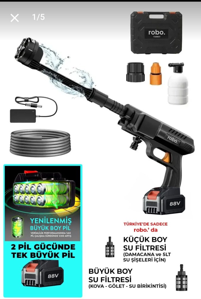 0 hiç kullanılmamış ROBO markalı Turbo 1 şarjlı 70 bar Yüksek Basınçlı Oto Yıkama Makinesi ve Sulama Tabancası