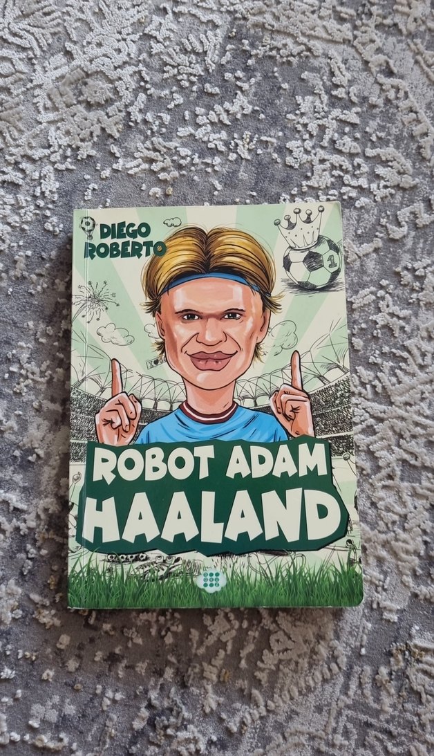 Diego Roberto'nun yazdığı, futbolcu Robert Haaland'ın karikatürleri ve mizahi anlatımı içeren 'Robot Adam Haaland' adlı mizah kitabı. ⚽