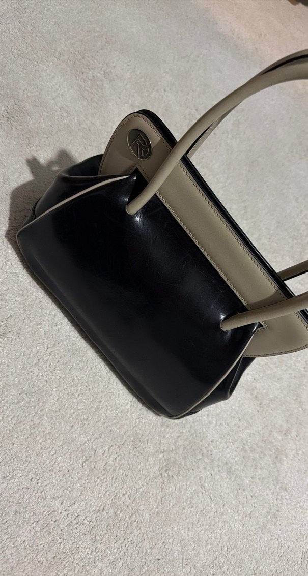 Rochas Bej ve Gri Deri Tokalı Kadın Çanta