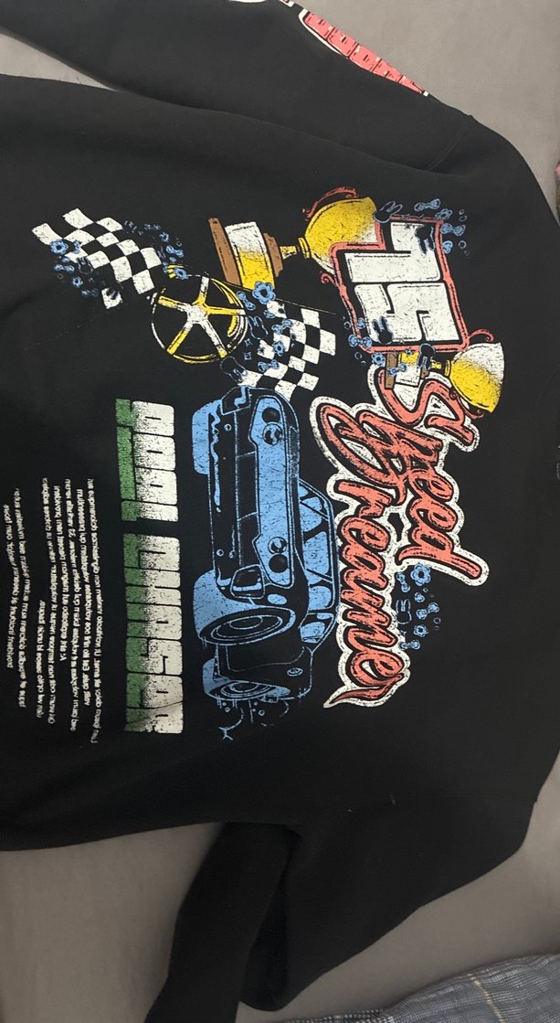 Siyah renkli, uzun kollu erkek tişörtü. Gevşek kesim ve baskılı desen, rock punk esintili sokak stili. Yuvarlak yaka, sentetik kumaş.