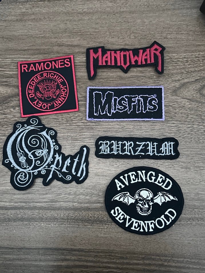 Ramones, Manowar, Misfits, Opeth, Burzum ve Avenged Sevenfold logolu siyah rock punk patch. Grunge punk tarzına uygun. Tanesi 150, toplu alımlarda yardımcı olurum