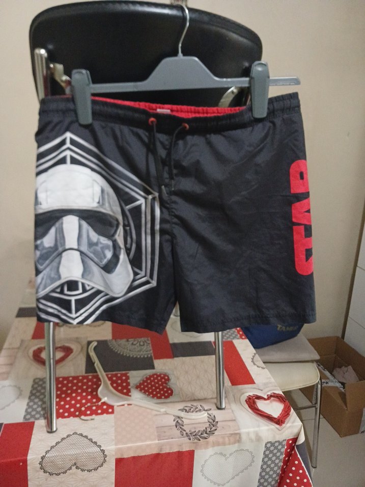 Fıt kesim, siyah mini erkek mayo, baskılı Stormtrooper figürü ve kırmızı STAR yazısı ile, kemerli bel detayıyla. ⚡bel43 cm uzunluk 37cm 11/12 tas ama 15yasa kadar uyar xs vs s bedene de uyumludur ölçüleri baz alarak alim yapiniz lutfen deforme yoktur
