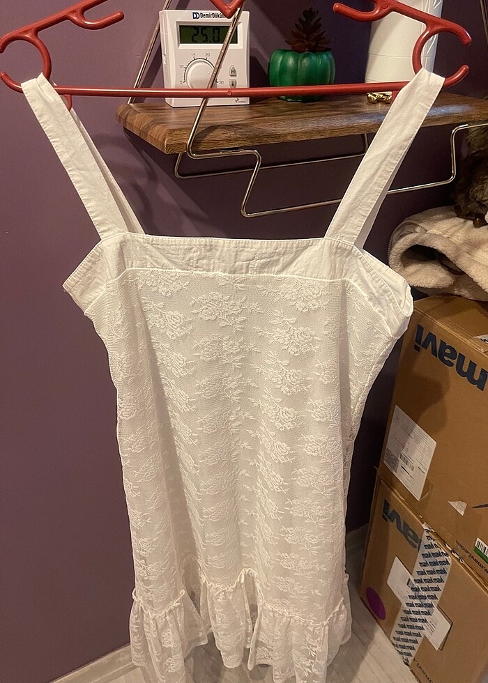 Rodi mod beyaz dantel güpür detaylı içi astarlı şık elbise