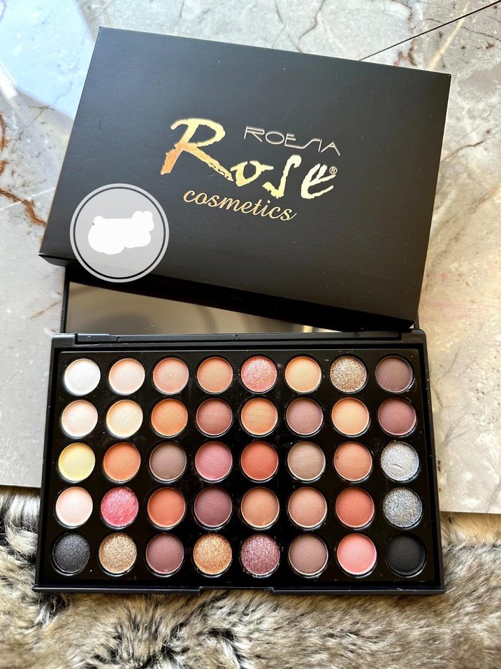 Roema Rose kozmetik göz farı paleti, 40 adet canlı bej ve koyu tonlarda renk içerir.
