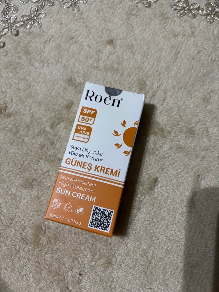 Roen SPF 50+ güneş kremi, suya dayanıklı ve yüksek koruma sağlar. 50 ml boyutundadır. ☀️