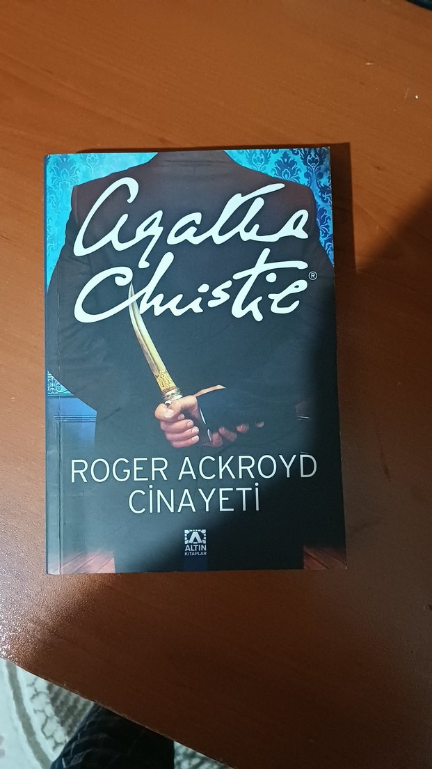 Agatha Christie'nin "Roger Ackroyd Cinayeti" adlı polisiye romanı, kapakta bir adamın sırtında bıçak tutmasıyla dikkat çekiyor.