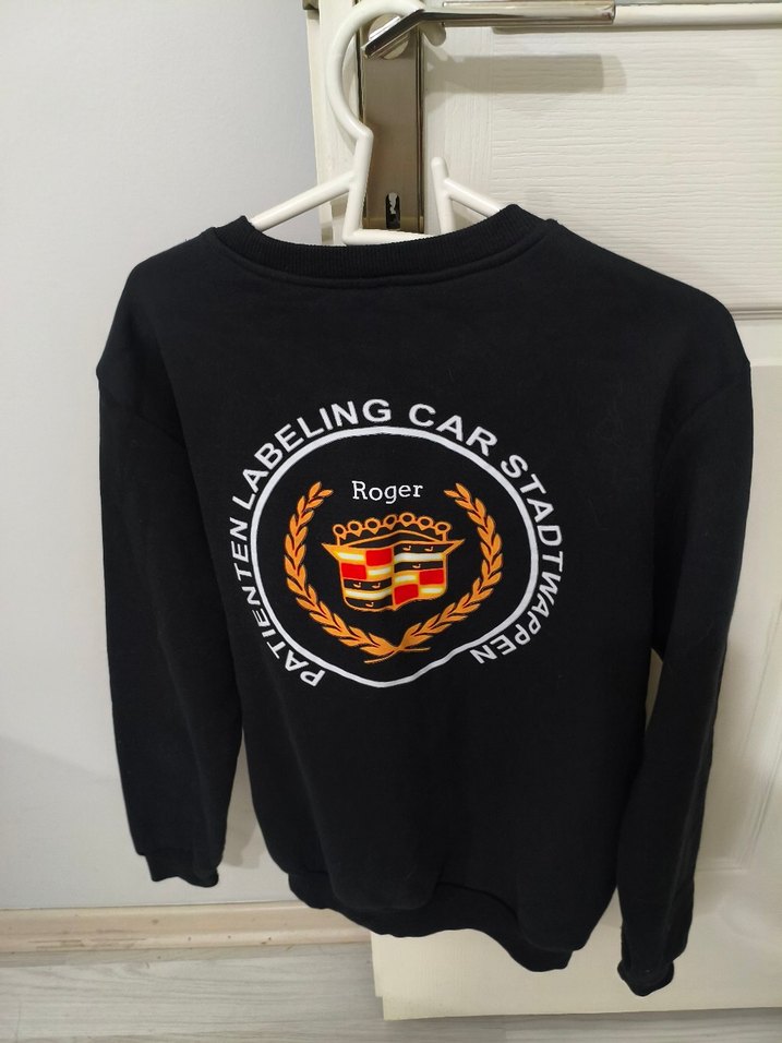 Siyah, Roger baskılı sırt detaylı, yuvarlak yaka ve uzun kollu, bol kesim kadın sweatshirtü. Yumuşak ve sıcak kumaştan.