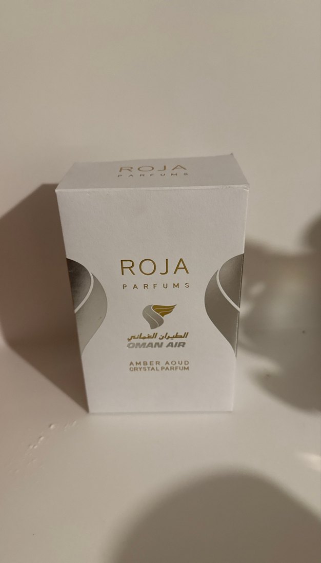 Roja Amber Aoud Crystal Parfüm, zengin amber ve aoud kokusuyla, Oman Air logosu ile şık kutuda sunulur. Erkekler için özel bir koku.
