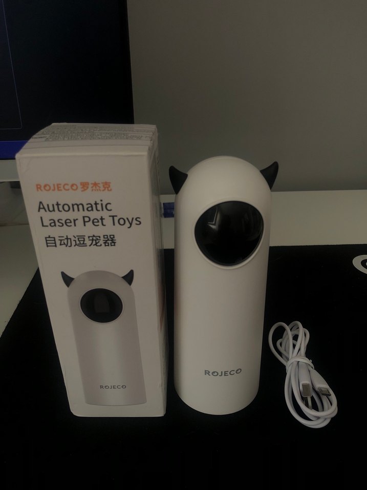 ROJECO otomatik lazerli evcil hayvan oyuncağı, renkli beyaz tasarımı ve sevimli siyah kulakları ile gelir. USB şarj kablosu dahildir. 4 Pillede çalışır yeni sadece denenmek için alındı hiçbir arızası defosu yok.