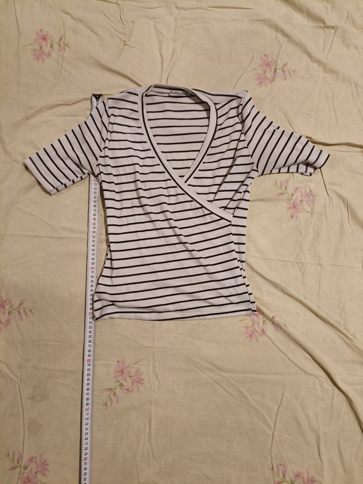 L beden. kısa kollu, çizgili tişört. Yumuşak sentetik kumaştan, günlük kullanıma uygun rahat ve şık tasarım.Deformesiz sorunsuz.