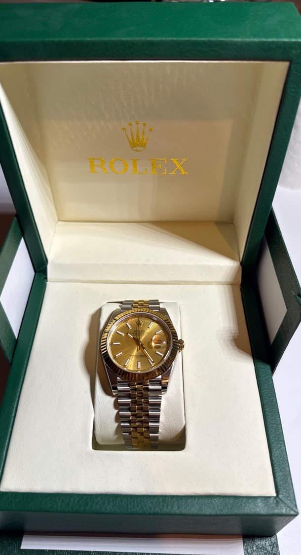 Eta birebir klondur modelidir . Bu erkek Rolex saati, parlak altın rengi ve modern klasik tarzıyla zarafeti ve zamansız tasarımı bir araya getiriyor.