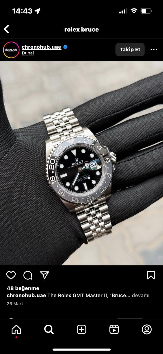 Rolex GMT Master II siyah kadranlı, parlak ve klasik tasarımlı, paslanmaz çelik bilezikli erkek saati. Tarih ve 24 saatlik bezel özellikli. ⌚