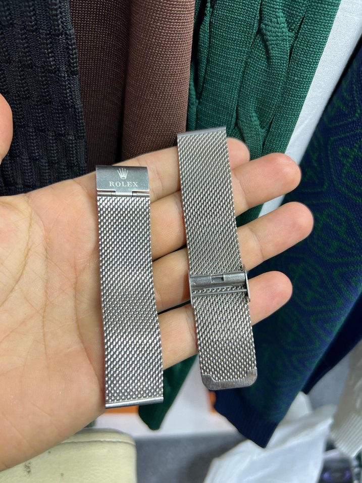 Rolex gri renk erkek saat kayışı, minimalist örgü tasarıma sahip. Trendy casual ve street wear stillerine uygun, modern ve şık bir görünüm sunar. ⌚