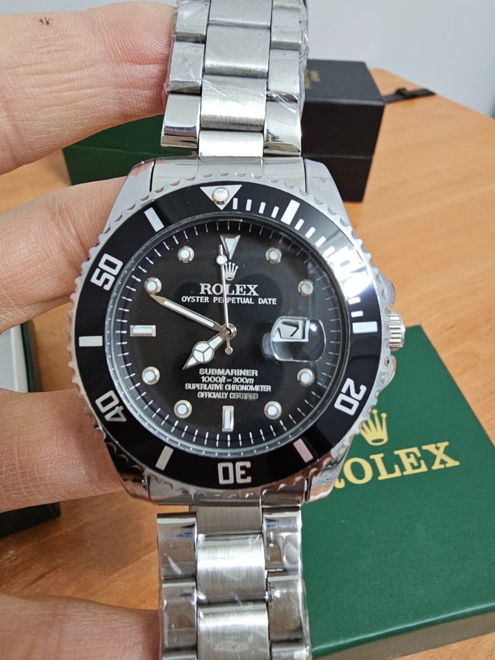 Rolex erkek kol saati, siyah kadranlı, tarih göstergesi vardır. Pillidir. Paslanmaz çelik kordonlu. Döner bezellidir. Renk çeşitleri vardır. Saat ve kordon çeşidi çoktur bakabilirsiniz. ⌚