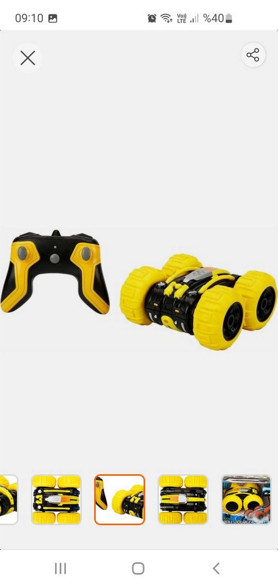 Sarı renkli, uzaktan kumandalı oyuncak araba ve kumandası, renkli oyun keyfi için tasarlanmıştır. Roll Double 360 Derece Dönen Uzaktan Kumandalı Araba 16 cm sorunsuz az kullanıldı.