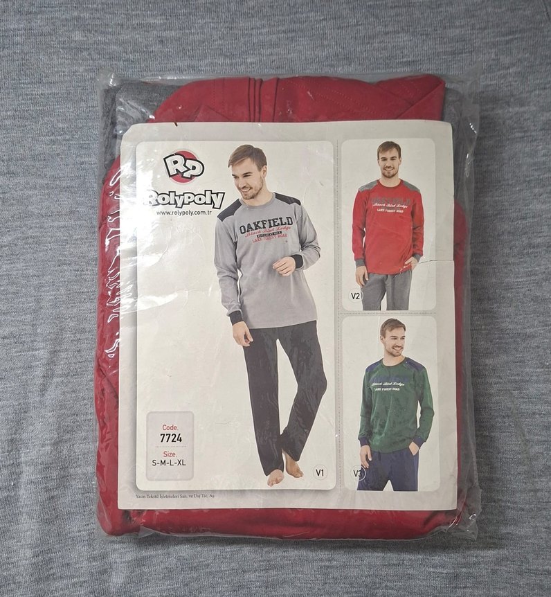 Orjinal RolyPoly marka, uzun kollu, bisiklet yaka ve baskılı kırmızı erkek pijama takımı.L beden mevcuttur(V2)