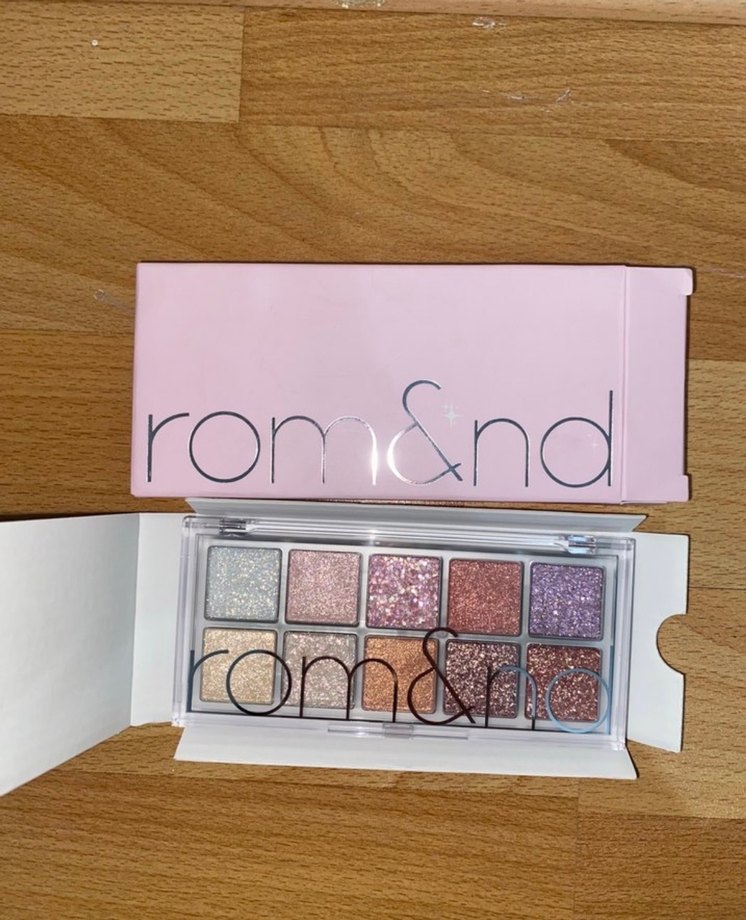 rom&nd far paleti, ışıltılı ve simli bitişlere sahip açık canlı pembe tonları içerir. Göz makyajı için çeşitli parlak renkler sunar. Sadece denendi. Sıfır ayarındadır. Çoğu renkleri hiç dokunulmadı bile.