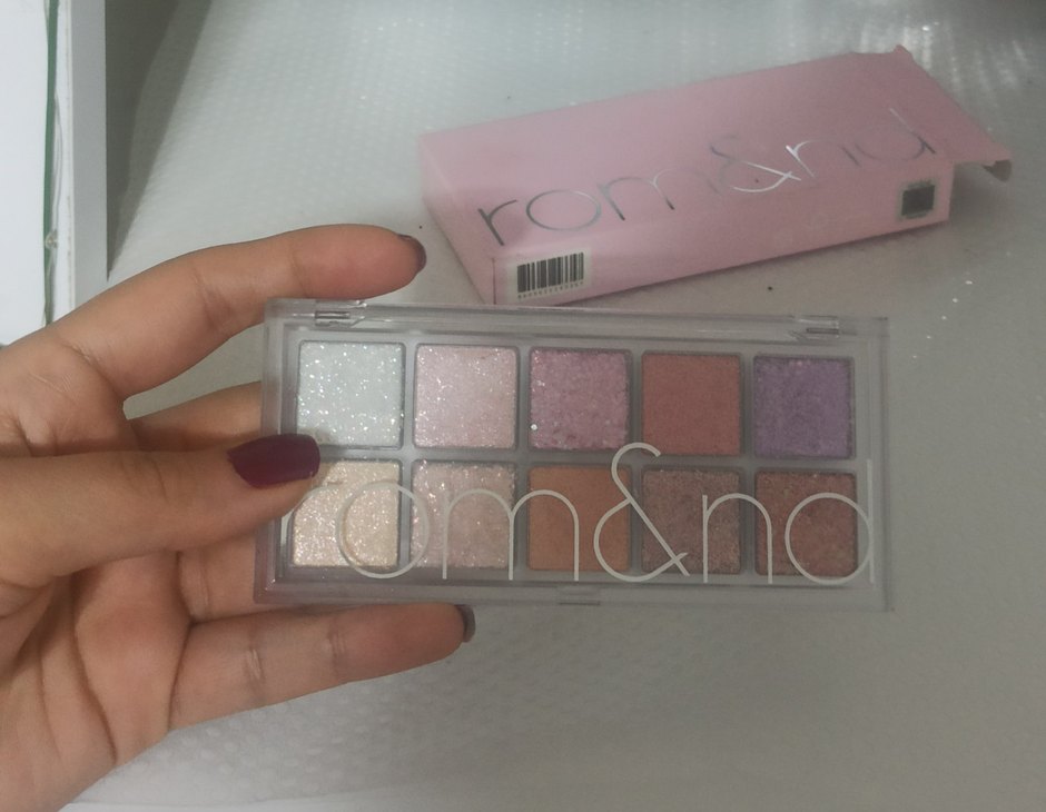 Rom&nd pembe tonlarda, ışıltılı ve mat dokular içeren far paleti. Yumuşak ve canlı renklerle çeşitli makyaj stilleri yaratılabilir.