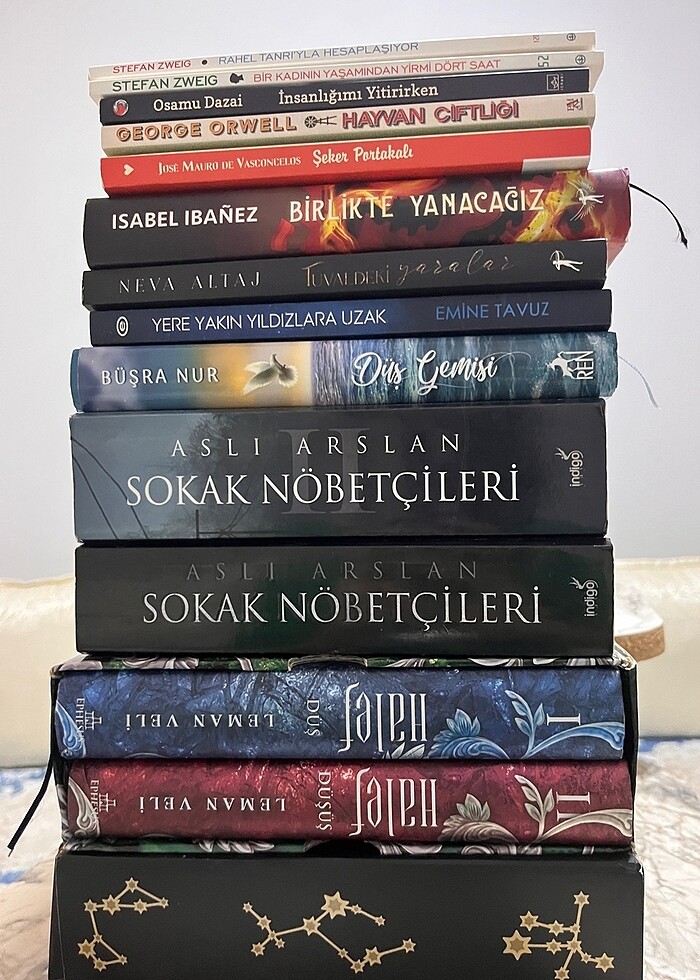 Sokak nöbetçileri 350 posterleri ve ayraçları mevcut Halef 300 ciltli ve posteri var Birlikte yanacağız 100 Lordlar ve varisler kutulu ciltli 4 kapagı ve ayraçları mevcut 120 tl Düş gemisi ciltli okunmadı sıfır 70 TUVALDEKİ YARALAR 100 ayracı mevcut Yere yakın yıldızlara uzak 90 Bir kadının yaşamından 24 saat 40 Rahel tarıyla hesaplaşıyor 30 İstediğiniz varsa msj atın