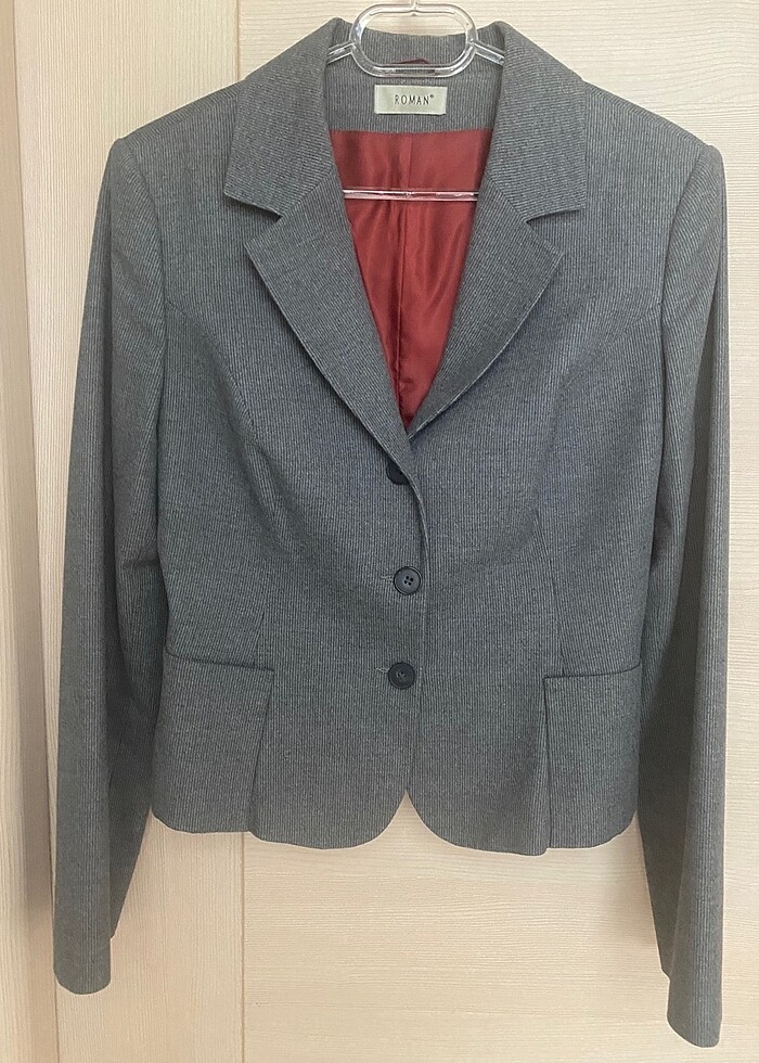 Gri renk 40 beden ceket ( takım olarak pantolonuda mevcut )