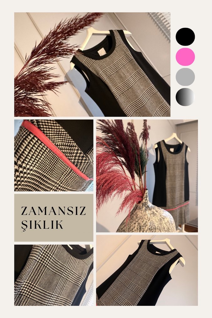 Zamansız Desen, Dinamik Dokunuş Roman kalitesiyle sunulan bu Gipsy koleksiyonu elbise, klasik ekose desenini modern bir formla birleştiriyor. Hem ofis şıklığı hem de hafta sonu etkinlikleri için ideal olan bu parça, bel hattındaki canlı pembe biye detayıyla sıradanlıktan uzaklaşıyor. • Özgün Tasarım: Siyah-beyaz geniş ekose paneller, yanlardaki düz siyah bloklarla birleşerek optik olarak daha ince bir silüet çizer. Alt kısımdaki piliseli etek detayı ise elbiseye hareketli ve genç bir hava katar. • Kumaş ve Konfor: Zengin bir kumaş karışımına sahiptir; %30 Yün (%30 WO) içeriğiyle sıcak tutarken, %35 Akrilik ve %35 Polyester karışımı sayesinde formunu korur, kolay kırışmaz. Esnek yapısı (%3 Elastan) gün boyu konfor sağlar. • Kalıp Bilgisi: Etiket bedeni 42 olmasına rağmen, Roman’ın bu özel kesimi 40 beden için de rahat ve dökümlü bir kullanım sunan "geniş kalıp" yapısındadır. Teknik Ölçüler: • Boy: 90 cm • Omuz: 40 cm • Göğüs: 50 cm • Koleksiyon: Roman Gipsy