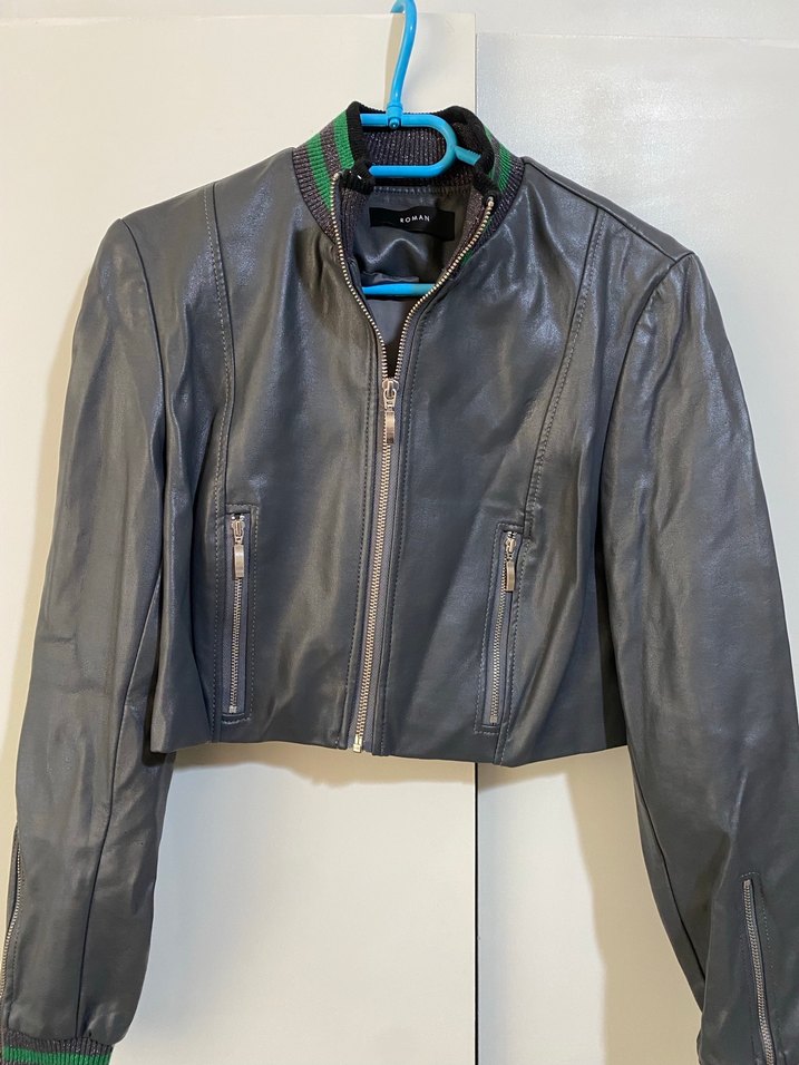 Kusuru yoktur birkaç defa kullandım. Fermuarlı cep ve ön detaylara sahip, gri renkli, fitted deri kadın ceket.