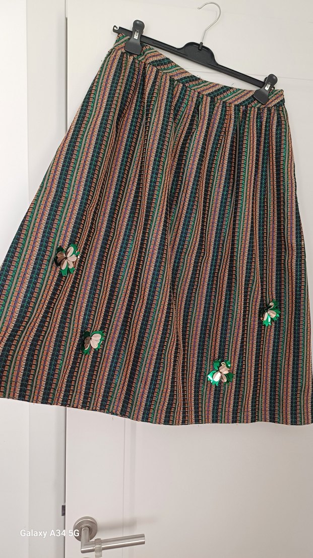 çok renkli çizgiler pullu çiçek detaylı, cepli midi boy, A kesim az ve temiz kullanıldı herhangi bir deformesi yoktur
