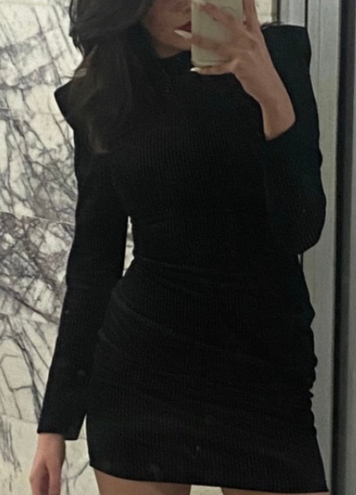 Elbise sadece iki kere giyildi.Oldukça şık ve elegant bir elbise,davetlerde akşam yemeklerinde giyilebilir.XS beden. Roman Kadife Çizgili Vatkalı Mini Elbise Siyah K2311524_001 Olarak arama yapabilirsiniz ürünün güncel fiyatı 8189 tl. Siyah, yüksek yakalı, uzun kollu ve vücuda oturan mini elbise, yumuşak sentetik kumaştan. Drapeli detay ve midi boyda, cesur ve rahat gotik tarz için uygundur.