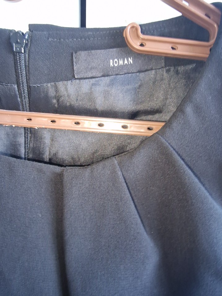 ROMAN markalı, siyah parlak midi uzunlukta, kemerli, dar kesim . Ofis için uygun, normcore tarzında, sentetik kumaştan.