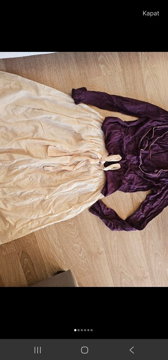 mor üst, uzun kollu ve yakalıdır. ve tamamen pamuk kumas harikadir. boncuk detayları da var.Açık renk, bej ve beyaz renklereen oluşan romantik çagr ğrışımlı etekle kombinlenmiş. ikidi se satılıktır. git ve cık üst j hiç giyilmedi etek bir iki kez kısa süreliğine giyildi. etek mango dur. iade almayacagim.