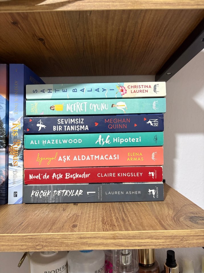 Benim tatlı romantik kitaplarım Sahte Balayı Nefret Oyunu Sevimsiz Bir Tanışma Aşk Hipotezi İspanyol Aşk Aldatmacası Noel’de Aşk Başkadır Küçük Detaylar