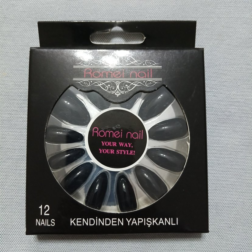 Romei Nail Siyah Parlak Kendinden Yapışkanlı Takma Tırnak 12 Li