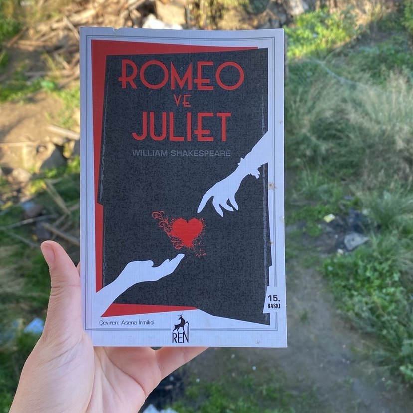 William Shakespeare'in Romeo ve Juliet eserinin 15. baskısı. Kapakta iki elin kalbe uzandığı sade bir tasarım bulunuyor. Çevirmen: Asena Irmakcı.