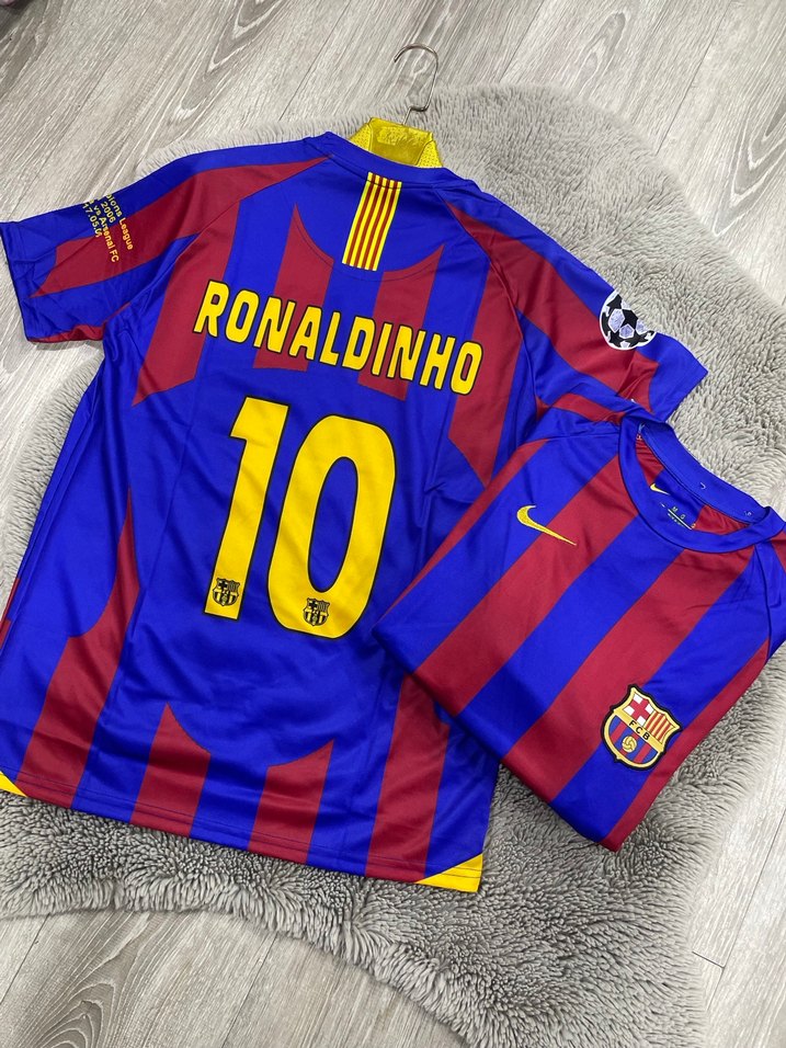 Renkli mavi erkek forması, baskılı Ronaldinho 10 tasarımı, kısa kollu ve bisiklet yaka. Sentetik kumaştan, düğmeli ve normal boyda, spor ve sokak stiline uygun. ⚽