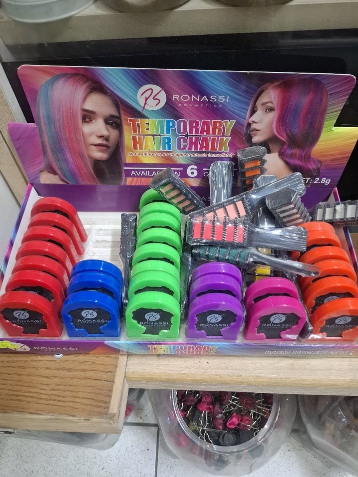 Ronassi markalı geçici saç tebeşiri seti, kolay uygulanabilen ve yıkanabilen canlı renkler içerir. Her tebeşir kompakt ve hızlı renk değişimi sağlar.
