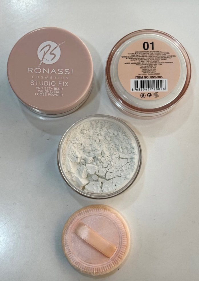 Ronassi Studio Fix 01,02,03 numaralı pastel renkte, pürüzsüz ve flu bir bitiş sağlayan pudra. Uygulama için sünger puff ile birlikte.