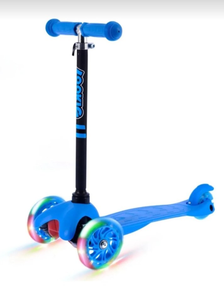 Renkli ışıklı tekerlekleri ve rahat tutacakları olan mavi çocuk scooterı, kolay sürüş sağlar. Yeni hiç kullanmadık. Kutusundan çıkarılıp montaj bile yapılmadı.