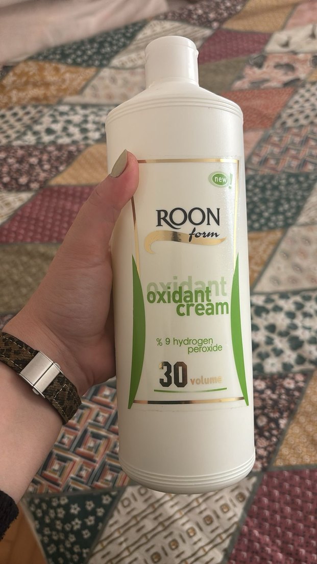 Roon Form %9 hidrojen peroksit içeren, 30 volümlük oksidan krem. Saç boyama işlemlerinde etkili oksidasyon sağlar. Sadece 1 kez kullanıldı 2 tutam saça. Saçhane den alındı